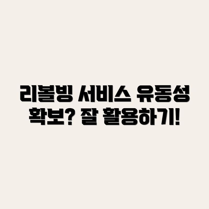 Q: 리볼빙 서비스를 이용하면 유동성 확보에 어떤 도움이 되나요?A: 리볼빙 서비스를 잘 활용하면 즉시 필요하지 않은 자금을 확보할 수 있어, 급한 자금 수요에 대비할 수 있으며, 예기치 않은 상황에서도 안정적인 유동성을 유지하는 데 도움이 됩니다.