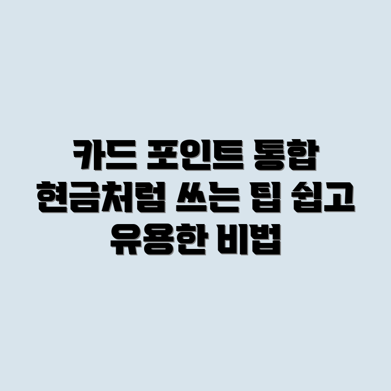 카드 적립금 통합조회와 현금처럼 쓰는 팁을 통해 효율적으로 활용하는 방법을 살펴보겠습니다. 7일 동안 다양한 전략을 적용해보세요.