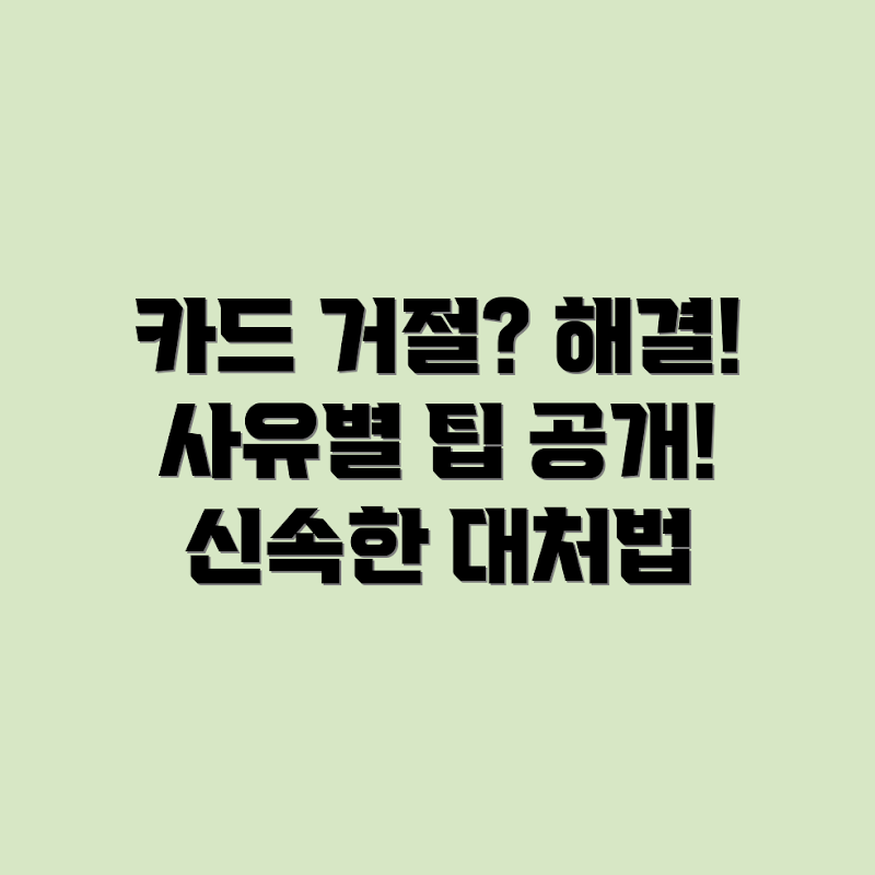 Q: 카드 사용 시 거절 사유를 예방하기 위한 팁은 무엇인가요?A: 카드 사용 시 거절 사유를 예방하기 위해서는 신용 한도를 주기적으로 확인하고, 결제 대금을 제때 납부하며, 카드 만료일을 체크하고 업데이트하는 것이 중요합니다.