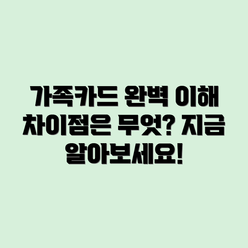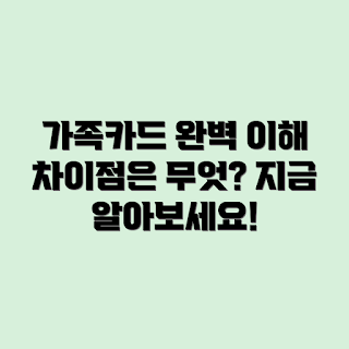 가족카드는 여러 구성원이 함께 사용할 수 있는 카드로, 비용 절감과 편리함을 제공합니다. 본 카드와의 차이점은 사용 범위에서 나타납니다. 이 카드는 여러 명의 결제를 하나의 계좌로 통합할 수 있어 관리가 용이합니다.