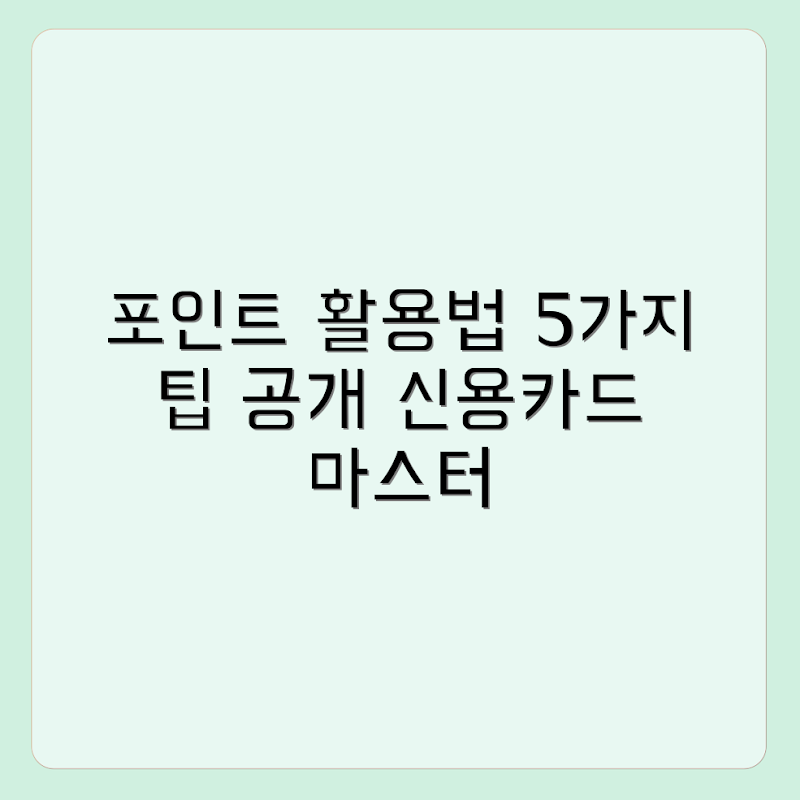 Q: 신용카드 포인트를 똑똑하게 활용하는 방법은 어떤 것이 있나요?A: 신용카드 포인트를 똑똑하게 활용하려면 우선 포인트 소멸 기한을 체크하고, 자주 사용하는 가맹점에서 적립한 포인트를 집중적으로 사용해야 합니다. 또한, 프로모션이나 제휴 혜택을 적극적으로 이용하면 더 많은 가치를 얻을 수 있습니다.