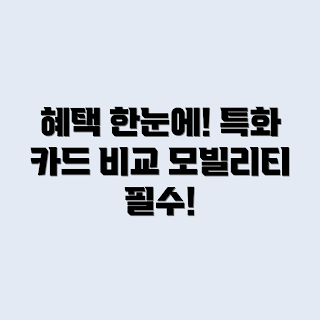 Q: 모빌리티 특화 카드란 무엇인가요?A: 모빌리티 특화 카드는 교통과 관련된 다양한 서비스(택시, 대중교통, 차량 공유 등)에 최적화된 혜택과 구조를 가진 카드입니다. 이 카드를 사용하면 관련 서비스 이용 시 할인이나 적립 혜택을 받을 수 있습니다.